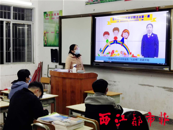 4月7日,我市初三、高三年级复学复课。结合“七彩未检”法治进校园活动,龙圩区检察院在复学复课的第一天,以远程视频的方式,为辖区各中学带来一堂特别的“防疫法治第一课”。龙圩中学、龙圩实验中学、林水中学、广平二中等多所学校组织了学生们观看这节特殊的法治课。 卢捷 摄影报道