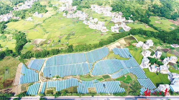 岑溪市马路镇义垌村唐陶农业基地果蔬大棚整齐排列,构成一幅壮丽的画卷。