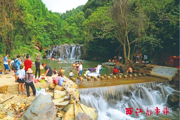 时下虽已进入立秋时节,但天气依然炎热,不少群众来到太子爽瀑布前寻清凉。富宁村太子爽瀑布风景优美,吸引了不少周边乡镇和梧州市区的群众前来游玩。
