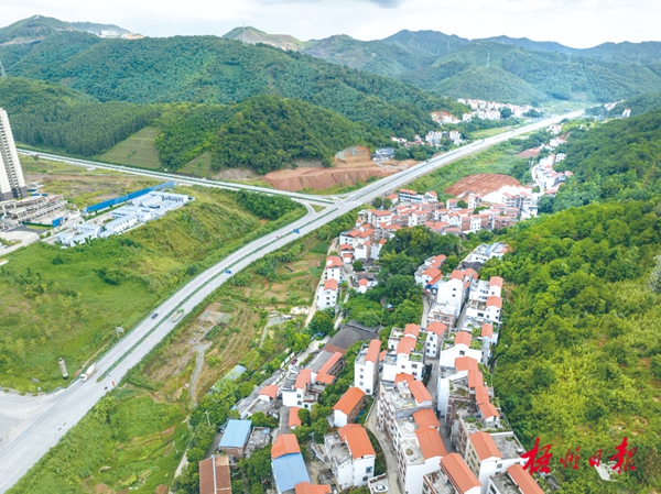 8月25日,万秀区龙湖镇旺步村,公路穿过村庄,构成一幅美丽乡村画卷。