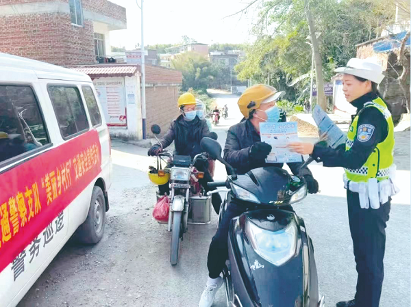 为进一步营造良好的农村交通安全出行氛围,近日,梧州市公安局交警支队走进夏郢镇周睦村,开展“美丽乡村行”交通安全宣传活动,进一步提升广大农村群众的交通安全意识,全力预防和减少农村地区冬季交通事故发生。