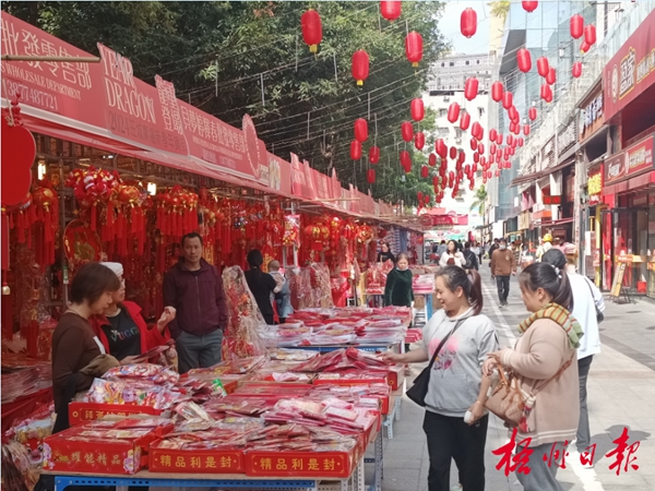 距离春节还有20多天,我市的旺城广场、太阳广场等商业区纷纷开设了年货市场,各式各样的年货、挥春上架,年味渐浓。