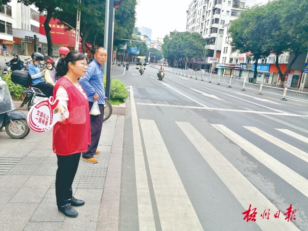 “叔叔,麻烦您退到停车线后面,以免影响正常通行”“阿姨,过马路请走斑马线”……连日来,万秀区东兴街道新时代文明实践所在新兴一路与文澜路交叉路口开展文明交通劝导活动。