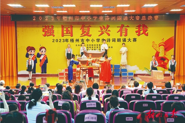 5月28日,由市委宣传部、市文联、市教育局、梧州日报社联合主办,市图书馆、梧州诗词学会、梧州朗诵专业委员会、梧州日报社小记者联盟承办,广西忠海置业发展有限公司协办的“强国复兴有我”2023年梧州市中小学生诗词朗诵大赛总决赛圆满落幕,取得了良好社会效应。