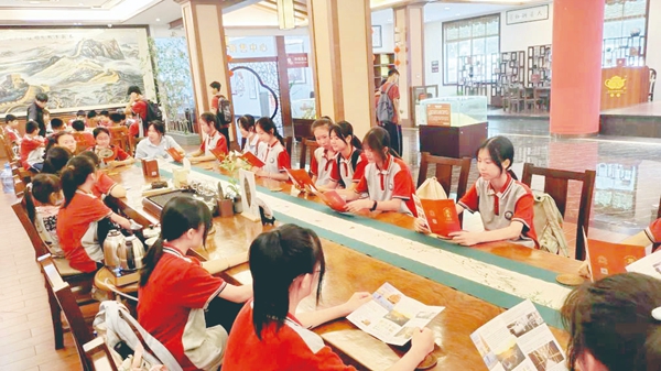 学生们走进茂圣六堡茶体验馆,认真学习六堡茶文化。 杨李兰 摄