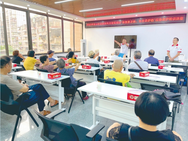 为普及急救知识,提高辖区居民急救意识及自救互救能力,近日,在万秀区新时代文明实践中心指导下,富民街道东山社区新时代文明实践站联合梧州市红十字会急救师资大队开展“扬急救之帆、为生命护航”应急救护知识讲座。