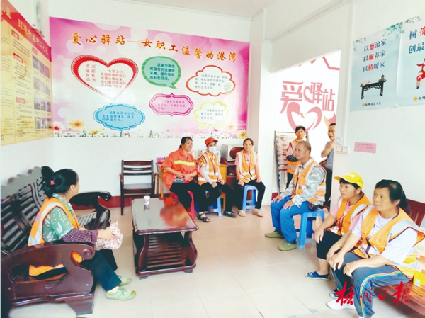 环卫工人在“爱心驿站”休息。 覃婷 陈奇 供图