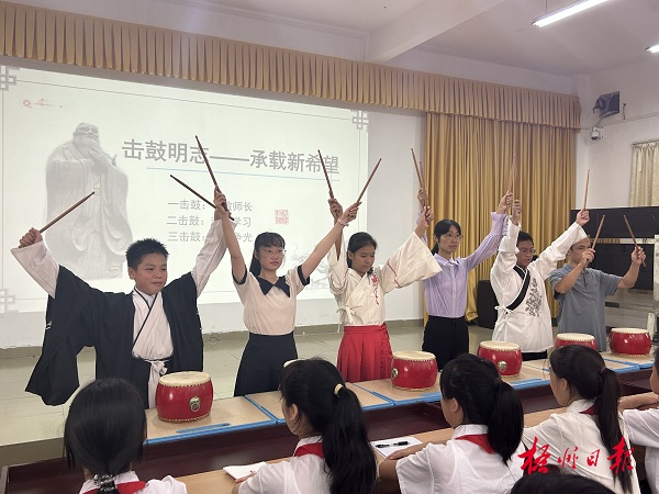 梧州市第十四中学学生击鼓明志。覃竞仪 摄
