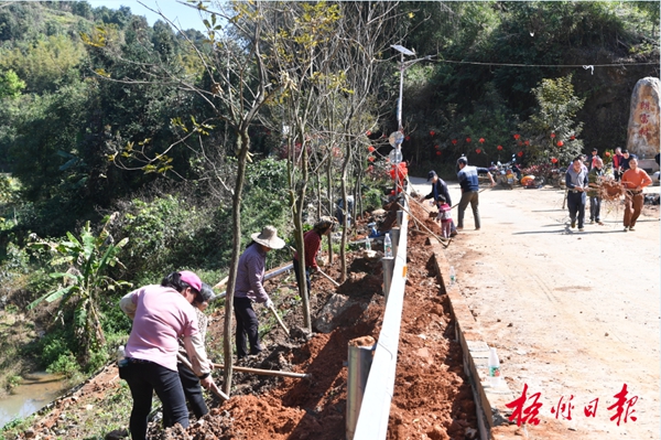 记者在泗洲村植树现场看到,工作人员搬运苗木、翻土挖坑、栽种花苗、灌木移栽,大家忙碌而有序,很快路两边就栽种好了树苗。驻村第一书记潘永介绍说:“为了打造生态宜居美丽乡村,我们积极开展绿化工作,配以黄花风铃、格木苗、秋枫苗等多种植物,这次共种植了90株树苗?!?/p>